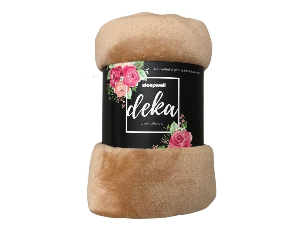 Deka z kolekce SLEEP WEEL. Přijemná deka z mikroflanelu ve světle hnědé barvě. Rozměr deky je 150x200 cm.