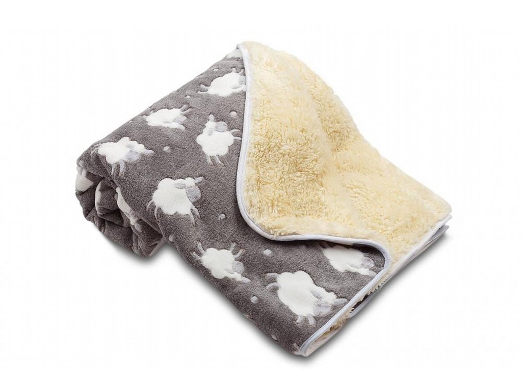 Extra měkká dětská přikrývka z mikroflanelu. Z jedné strany je mikroflanel SLEEP WELL s roztomilými, žakárově vetkanými ovečkami, z druhé strany je imitace ovčí vlny OVEČKA. Barva tmavě šedá. Rozměr deky je 100x150 cm.