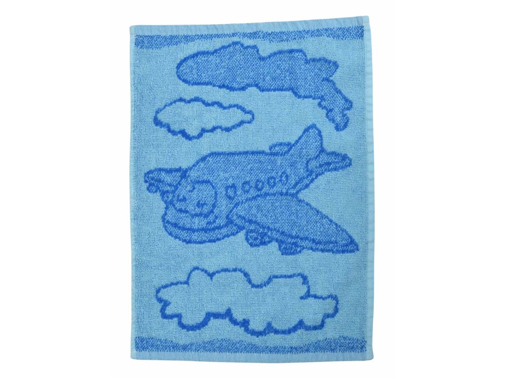 Dětský ručník s motivem modrého letadýlka v oblacích. Rozměr 30×50 cm, jemné froté z bavlny, vetkaný obrázek z obou stran. Praktický pomocník pro školku i domů.
