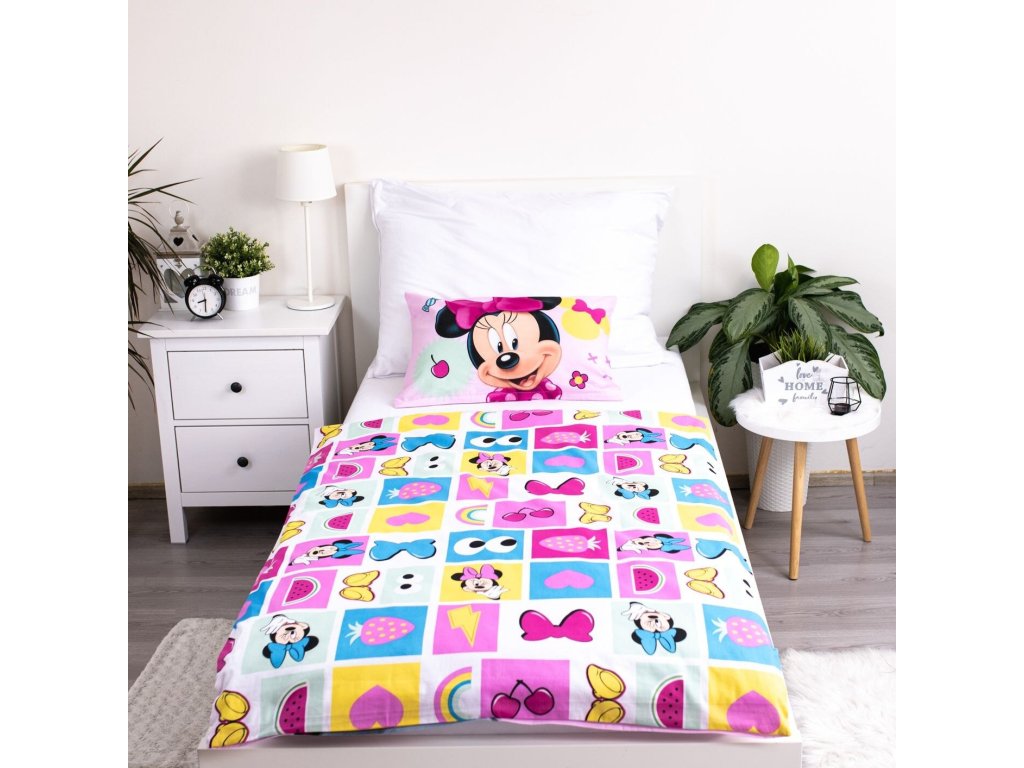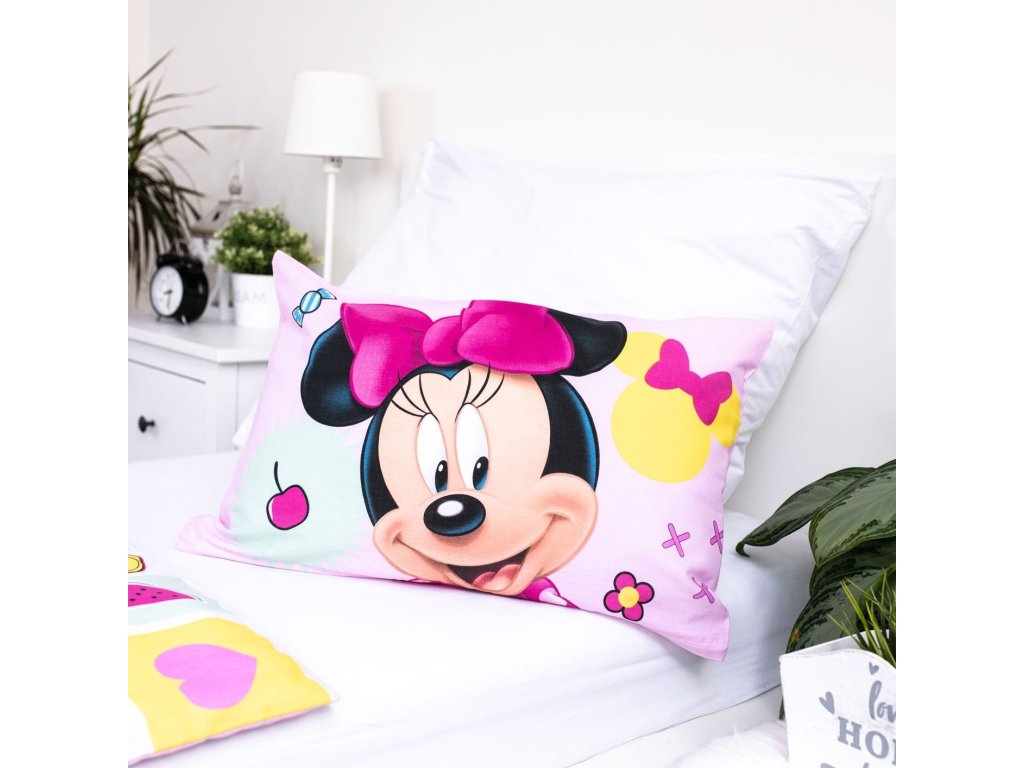 Polštářek je zdoben stejným motivem Minnie, což vytváří krásný soulad s peřinou. Světlé barvy a veselý design přinesou do dětského pokoje radostnou atmosféru.