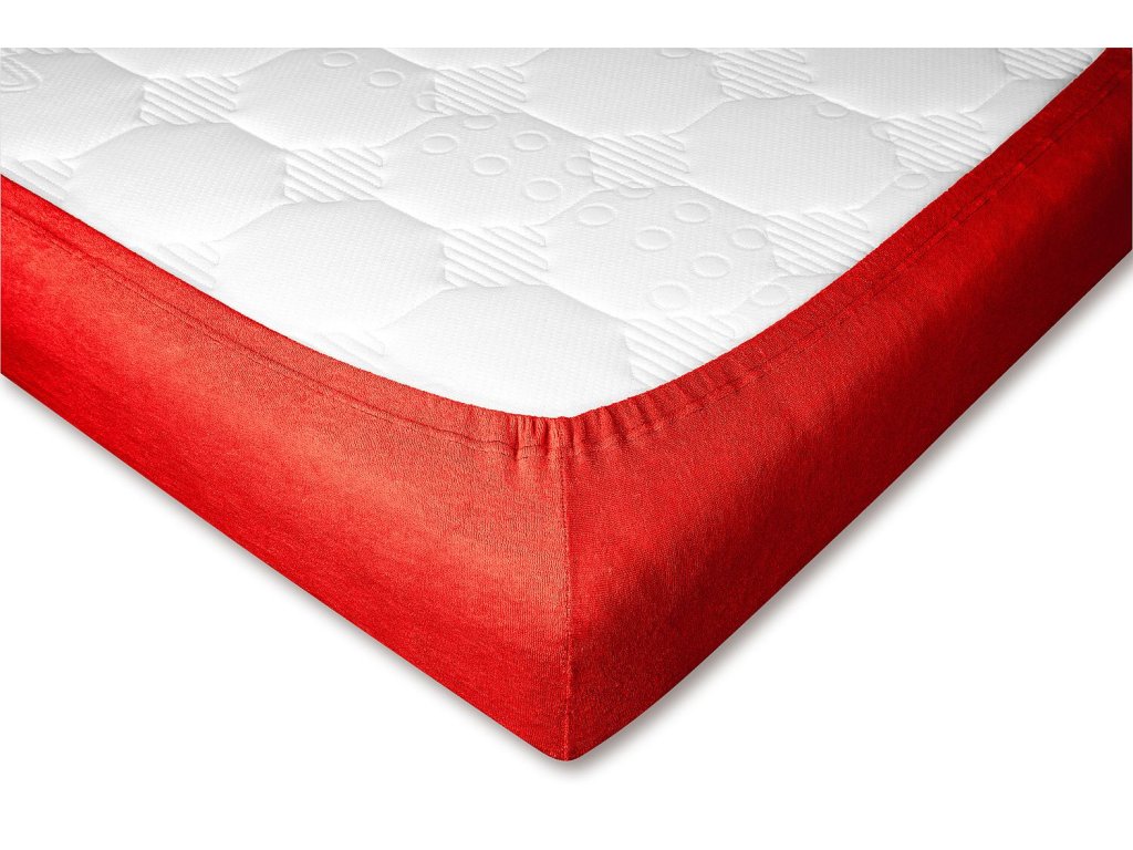 Červené napínací froté prostěradlo je vyrobeno z kvalitní směsi 80 % česané bavlny a 20 % polyesteru. Tento materiál je elastický, prodyšný, rozměrově stálý a velmi příjemný na dotek. Jemná froté smyčka zajišťuje měkkost a pohodlí při každodenním používání. Vhodné pro celoroční použití.
