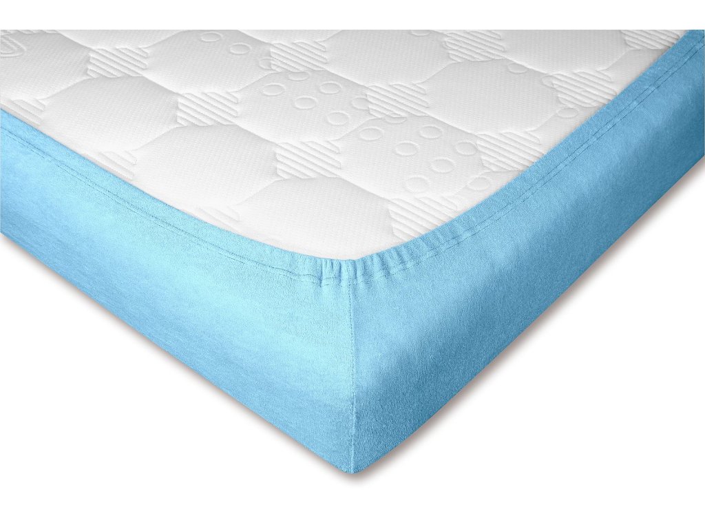 Světle modré froté prostěradlo přináší pocit svěžesti a klidu. Skvěle ladí s bílým, šedým nebo tmavě modrým povlečením. Oblíbené do ložnic, dětských pokojů i ubytovacích zařízení.
