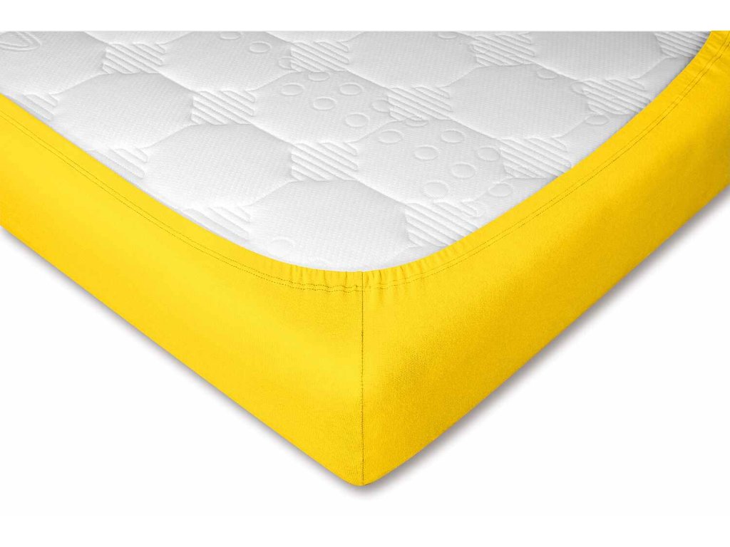 Napínací jersey prostěradlo v tmavě žluté barvě je ušito z kvalitní směsi 95 % česané bavlny a 5 % elastanu. Tato kombinace zajišťuje vysokou pružnost, rozměrovou stálost a dokonalé přilnutí k matraci. Hladký jersey materiál je příjemný na dotek a ideální pro celoroční použití.