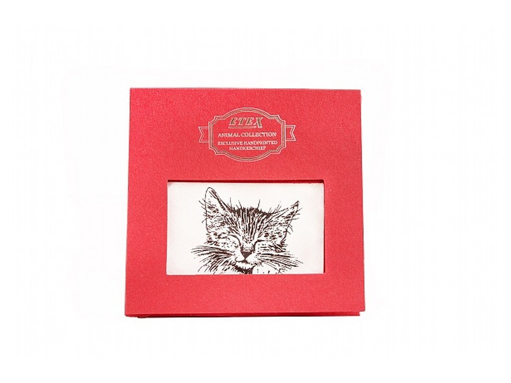 Stylový kapesník L35 s motivem kočky, balený v dárkové krabičce po 1 kuse.
