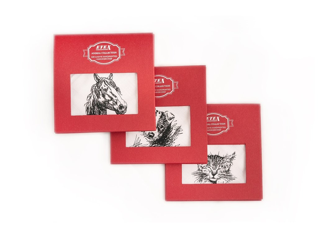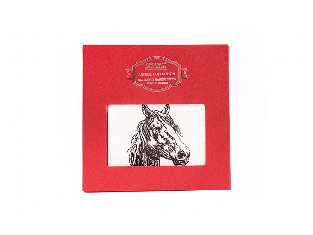 Stylový kapesník L35 s motivem koně, balený v dárkové krabičce po 1 kuse.