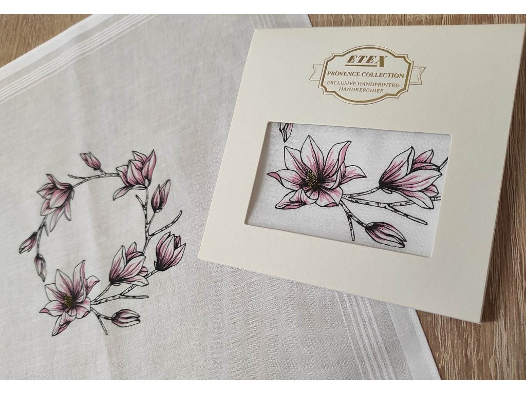 Kapesník - dárková krabička. Motiv magnolie. Baleno po 1 ks.