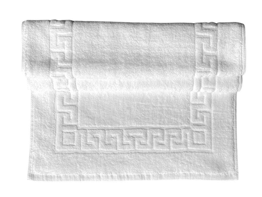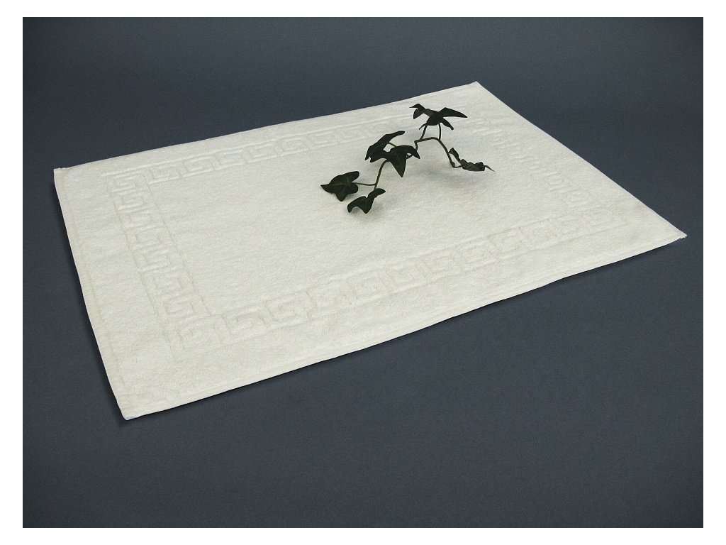 Koupelnová přeložka v bílé barvě s jemným antickým vzorem. Vhodná především do hotelů. Rozměr předložky je 50x70 cm.