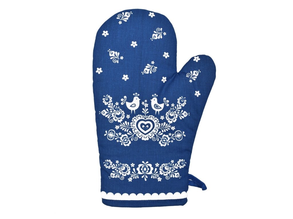 Kuchyňská chňapka s krásným slováckým motivem laděná do modré a bílé barvy. Vzor Folk modrý podklad. Skvělý tip na dárek. Ve stejném vzoru najdete v nabídce i zástěru.