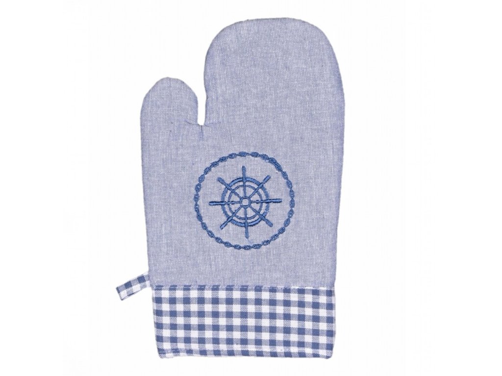 Kuchyňská chňapka laděná do jemné modré barvy. Dodá Vaší kuchyni svěžest. Rozměr chňapky je 18x28 cm. Ve stejném vzoru najdete v nabídce i zástěru a utěrky.Vhodná pro muže i ženy.