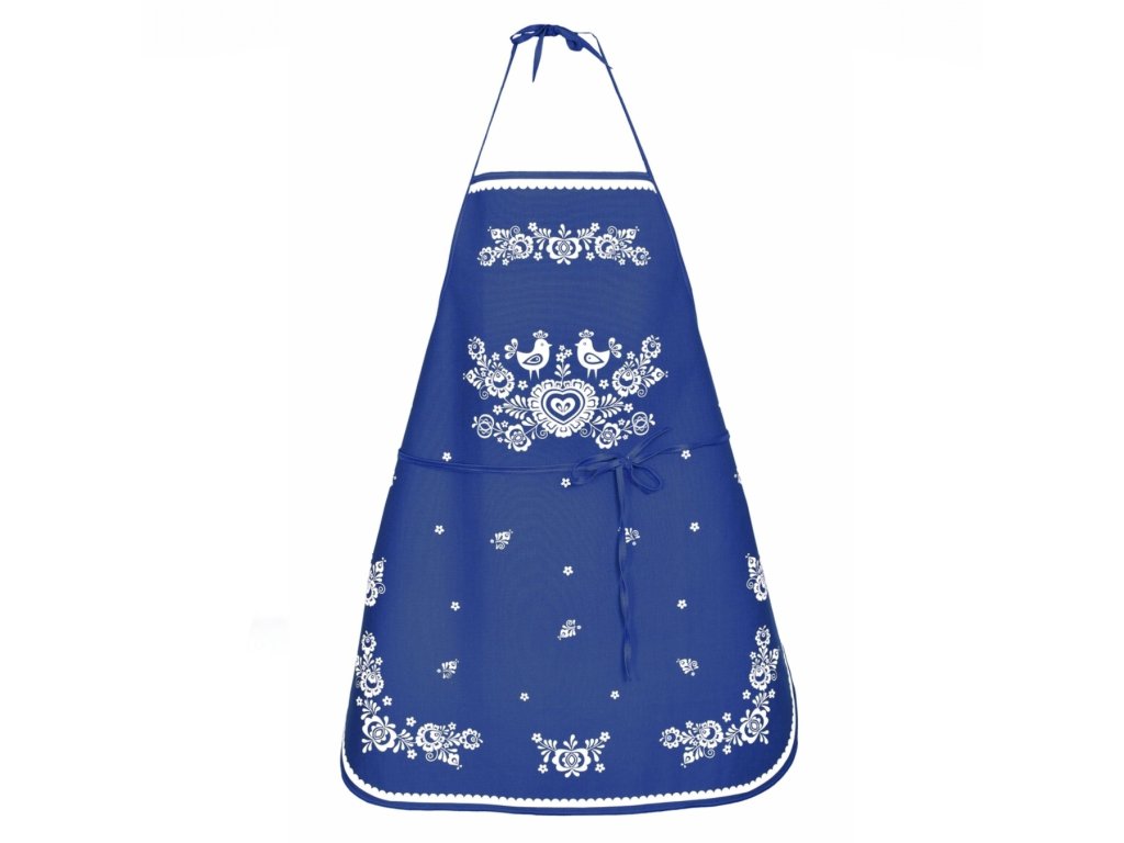 Název: Kuchyňská zástěra Folk podklad modrý.