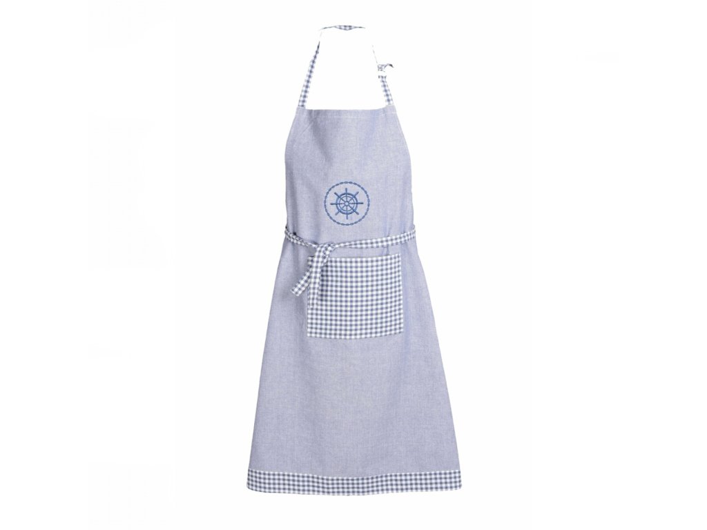 Kuchyňská zástěra s jemným motivem laděná do jemné modré barvy. Ve stejném designu koupíte i chňapku a utěrky. Rozměr zástěry je 70x90 cm. Vhodná pro muže i ženy.