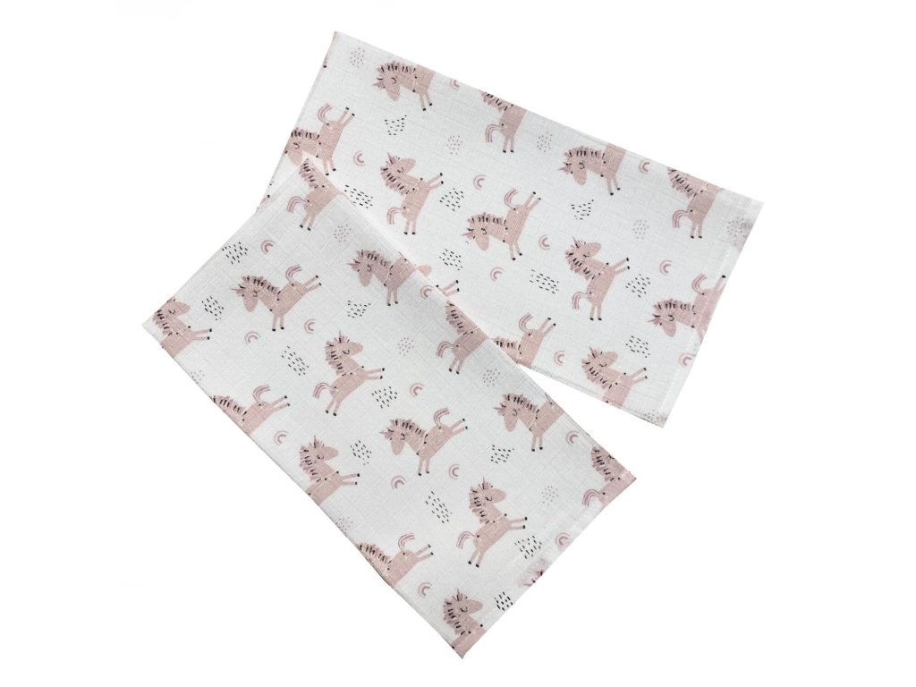 Látkové pleny s jemným a prodyšným materiálem, ideální pro citlivou dětskou pokožku. Rozměr 70x70 cm, balení obsahuje 5 ks. Vzor Růžový jednorožec.