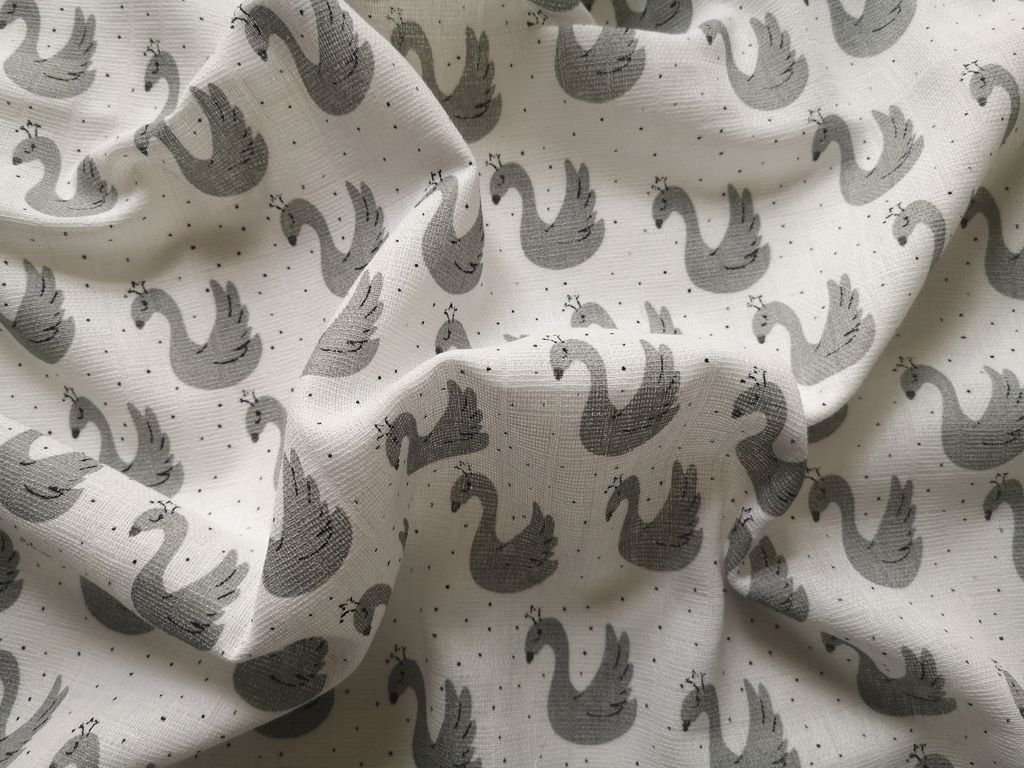 Látkové pleny jsou jemné, měkké a prodyšné, se vzorem šedých labutí. Rozměr pleny je 70x70 cm, balení obsahuje 5 ks.