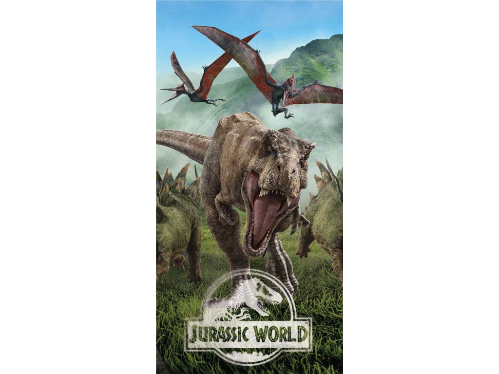 Dětská osuška Jurský svět Forest 70×140 cm s divokou scénou dinosaurů z populární filmové série. Skvělá pro malé dobrodruhy a fanoušky dinosaurů.
