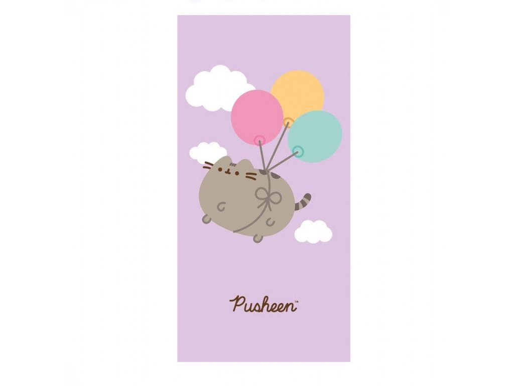 Pastelová osuška s kočičkou Pusheen a balónky. Roztomilý doplněk pro děti i dospělé.