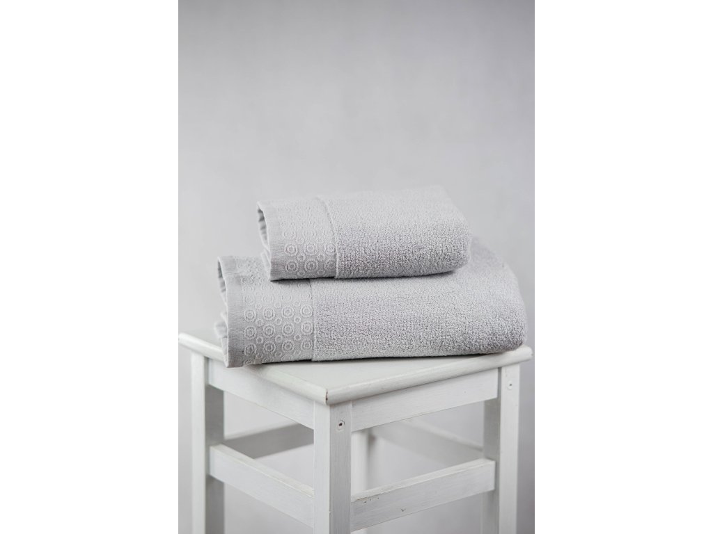 Světle šedá osuška s vysokou gramáží 550 g/m² potěší hebkostí, výbornou savostí a decentním dekorem. Elegantní doplněk pro každodenní použití i vkusně zařízenou koupelnu.