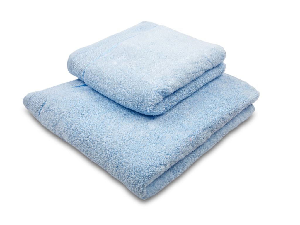 Světle modrá froté osuška Star z mikrobavlny s gramáží 450 g/m². Mimořádně hebká, savá a stálobarevná osuška v jemném odstínu pro domácnosti i profesionální využití.