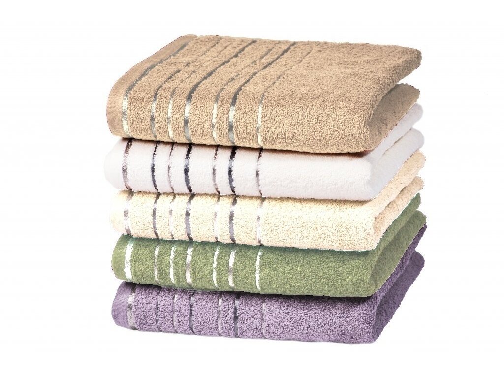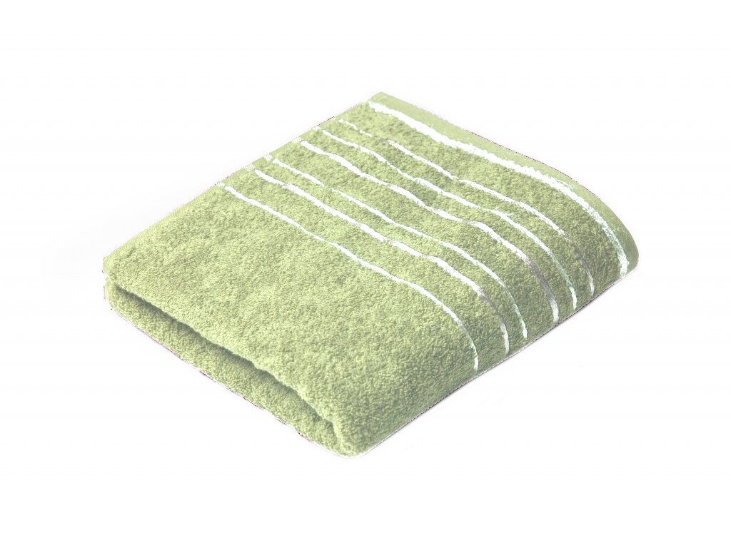 Hráškově zelená froté osuška Zara z kvalitní bavlny s gramáží 450 g/m². Hebká, savá a stálobarevná osuška se zdobnou bordurou v svěžím přírodním odstínu pro každodenní i profesionální použití.