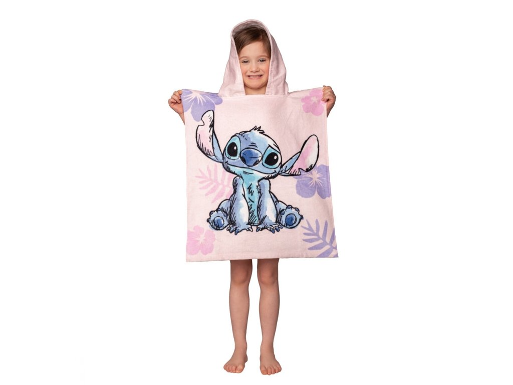 Dětské pončo Lilo a Stitch Pink 50×115 cm s kapucí. Roztomilý motiv Stitch, hebké froté a praktické využití po koupání i na pláži potěší každého malého milovníka Disney postaviček.