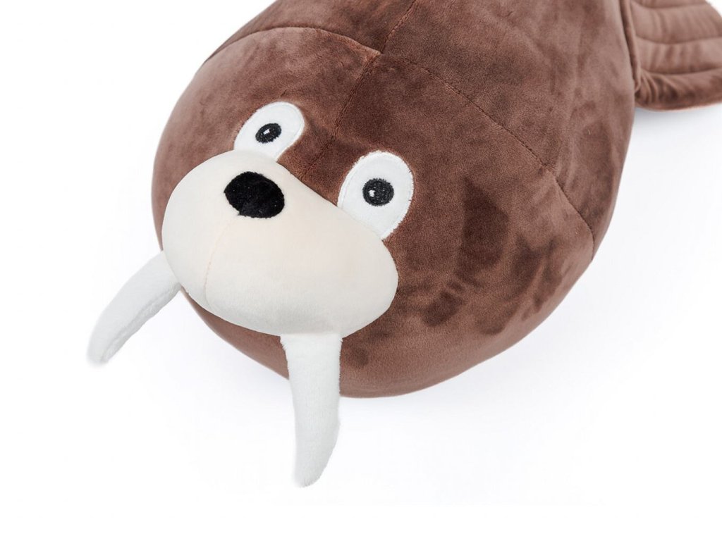 Hebký polštářek ve tvaru mrože, ideální na mazlení i jako dekorace. Vyroben z mikrospandexu a polyesteru, snadná údržba, skvělý dárek pro děti i dospělé. Rozměr 55 cm.