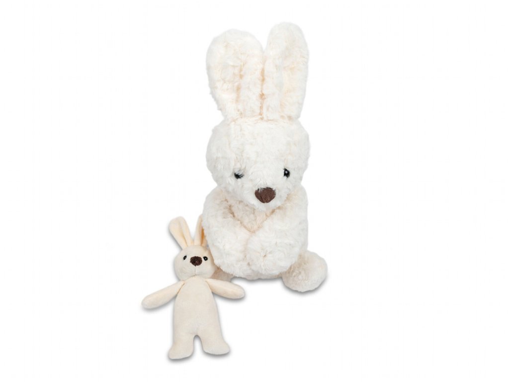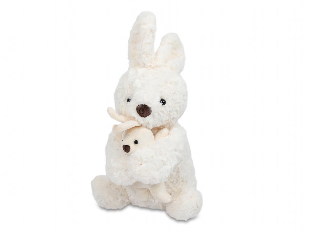 Roztomilý plyšový zajíc s mláďátkem v náručí v krémové barvě. Hebký materiál, ideální na mazlení i jako dekorace. Snadná údržba, skvělý dárek pro děti i dospělé. V krémové barvě.