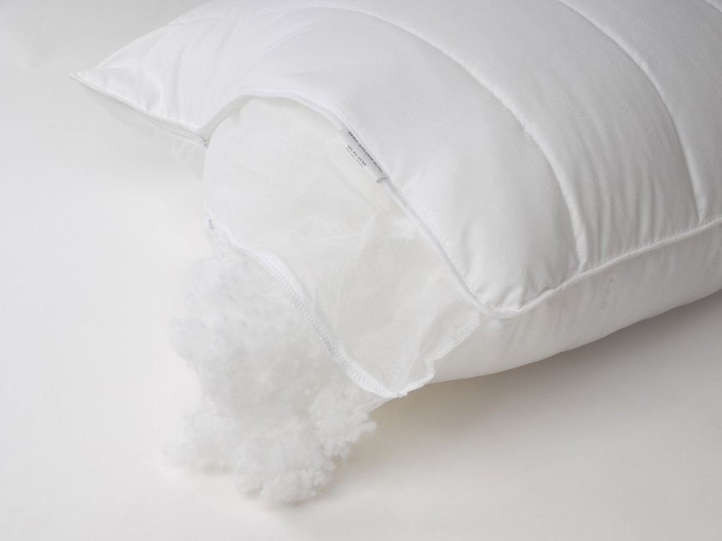 Uvnitř polštáře se nachází zipem uzavíratelný vak s výplní, který lze snadno vyjmout a upravit množství náplně podle potřeby. Prošití s tenkou vrstvou dutého vlákna zajišťuje celkově měkčí a komfortnější pocit při používání.