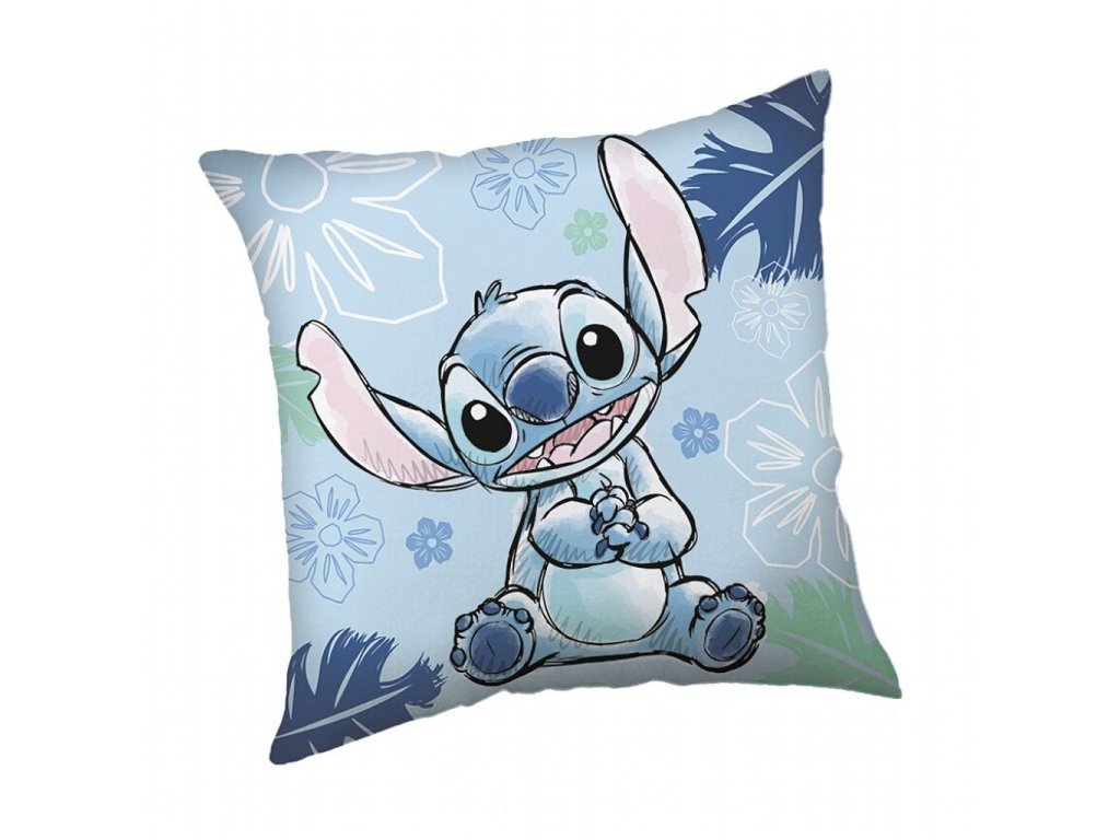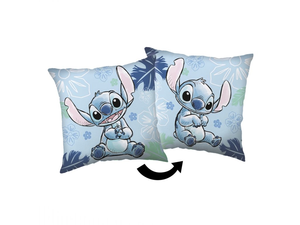 Oboustranný polštářek s motivem Stitch z oblíbeného animovaného filmu „Lilo & Stitch“ přináší tropickou atmosféru a radost do každého dětského pokoje. Na jedné straně je Stitch s otevřenou pusou a rošťáckým výrazem, na druhé straně s klidnějším úsměvem. Pozadí tvoří květinové vzory v odstínech modré, zelené a bílé. Rozměr 40×40 cm, ideální pro malé i velké fanoušky tohoto mimozemského rošťáka.