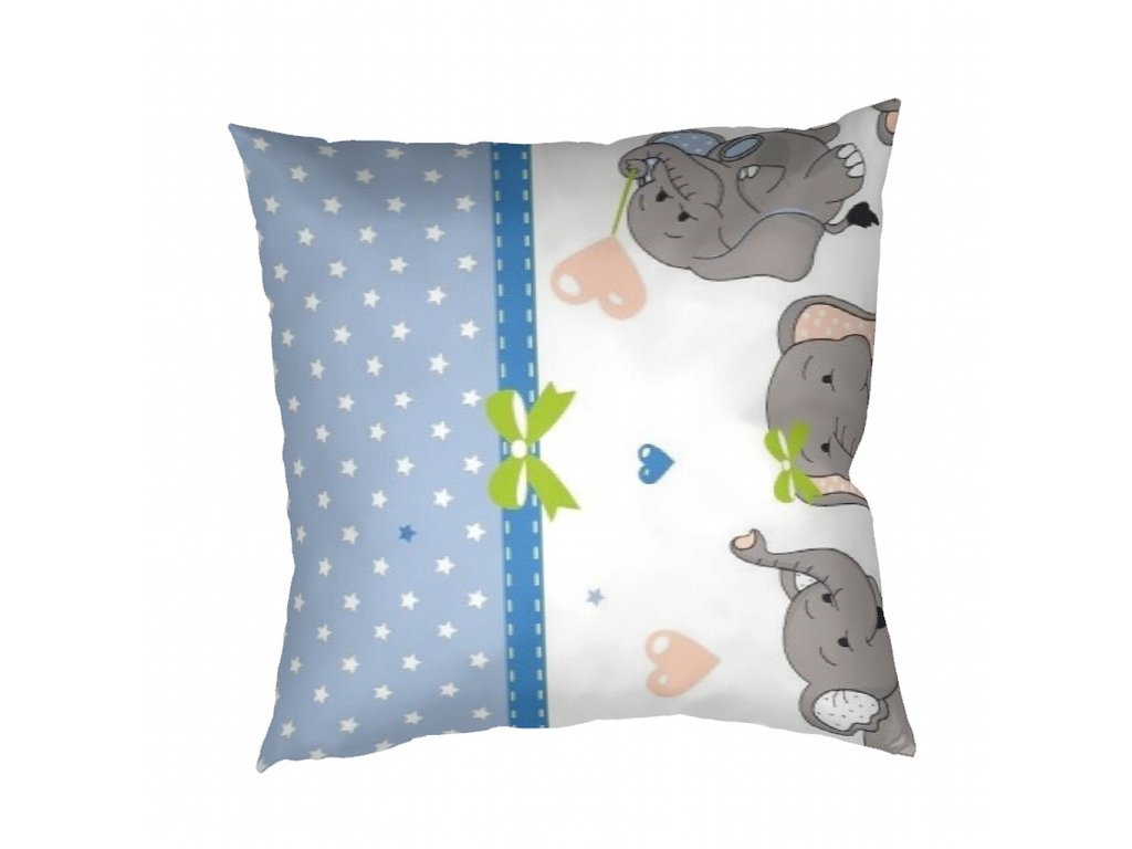 Krepové povlečení laděné do modré barvy s motivem sloníků. Rozměr povlaku je 40x40 cm.