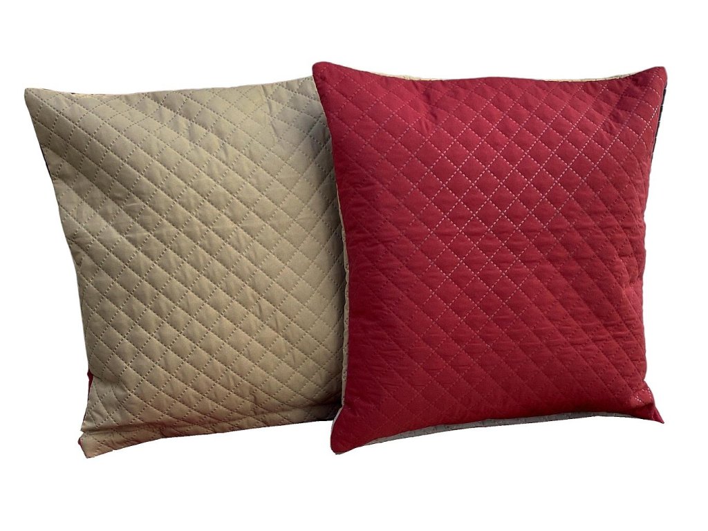 Povlak na polštářek k luxusnímu přehozu na postel, který dodá noblesu Vaší ložnici. Dekorační látka je na horní i spodní straně povlaku. Jedna strana oříšková a druhá vínová. Rozměr 40x40 cm.