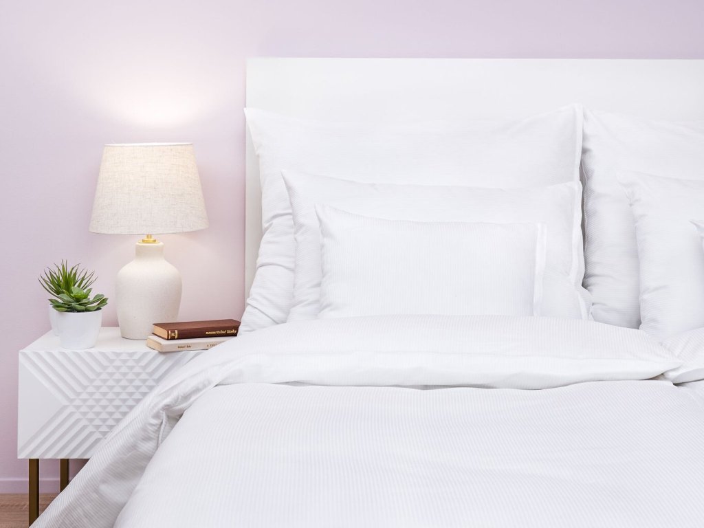 Povlečení s atlas grádlovou vazbou v bílé barvě s proužky 0,2 cm.