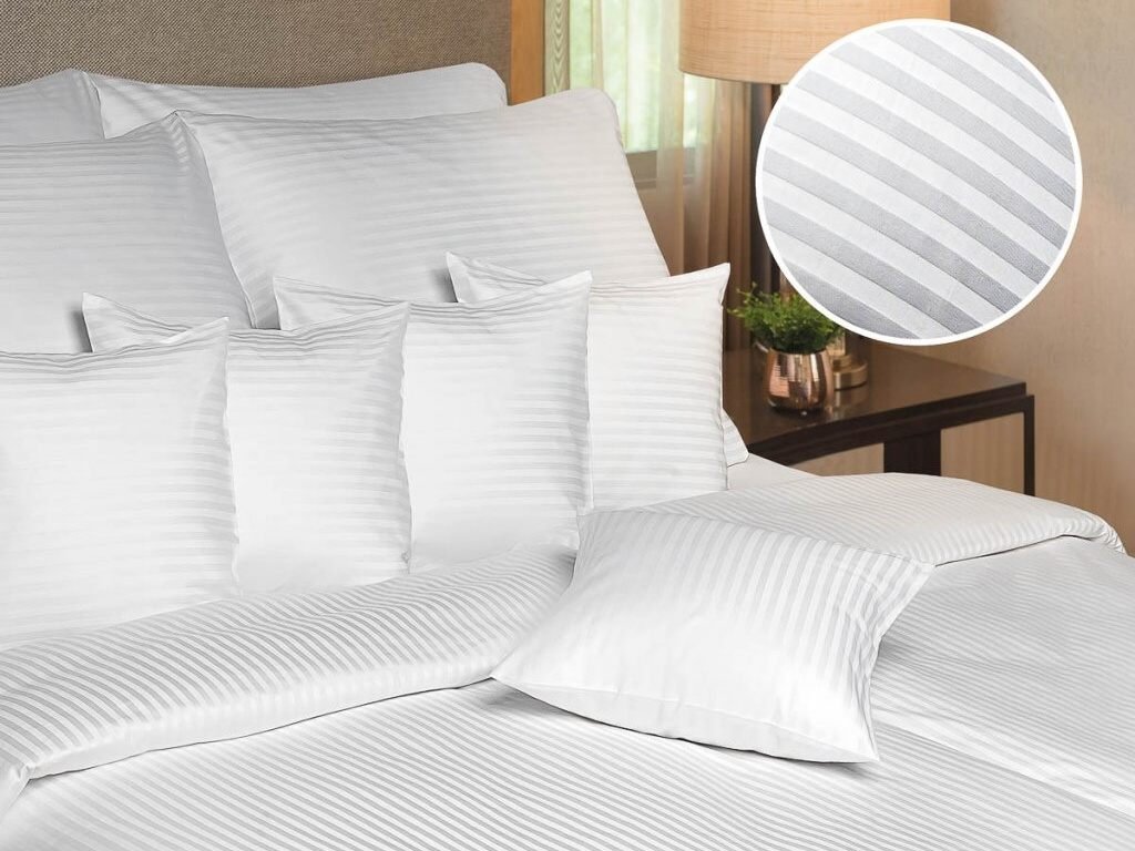 Povlečení s atlas grádlovou vazbou v bílé barvě s proužky 0,8 cm.