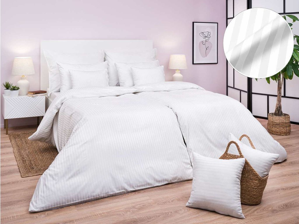 Povlečení s atlas grádlovou vazbou v bílé barvě s proužky 1 cm.