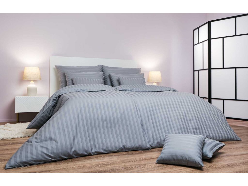 Povlečení atlas grádl šedý proužek 2 cm 140x200, 70x90 cm
