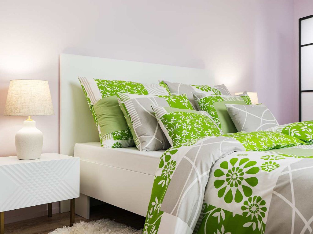 Stylové ložní prádlo Bluemoon zelený kombinuje květinové motivy s geometrickými prvky v odstínech zelené, bílé a světle šedé. Tento moderní a zároveň přírodní design přináší do ložnice svěžest a harmonii. Povlečení doporučujeme kombinovat s prostěradly v barvě bílá, světle šedá, kiwi nebo hrášková. Vyrobeno v České republice firmou DADKA VRACOV.
