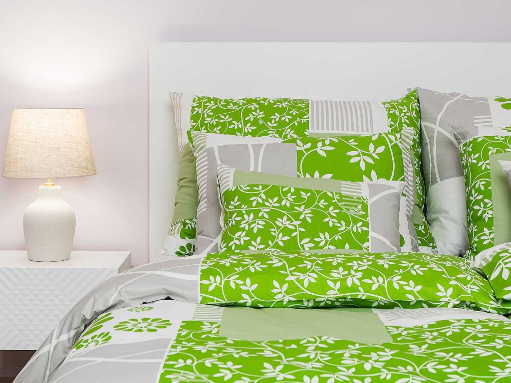 Stylové ložní prádlo Bluemoon zelený kombinuje květinové motivy s geometrickými prvky v odstínech zelené, bílé a světle šedé. Tento moderní a zároveň přírodní design přináší do ložnice svěžest a harmonii. Povlečení doporučujeme kombinovat s prostěradly v barvě bílá, světle šedá, kiwi nebo hrášková. Vyrobeno v České republice firmou DADKA VRACOV.