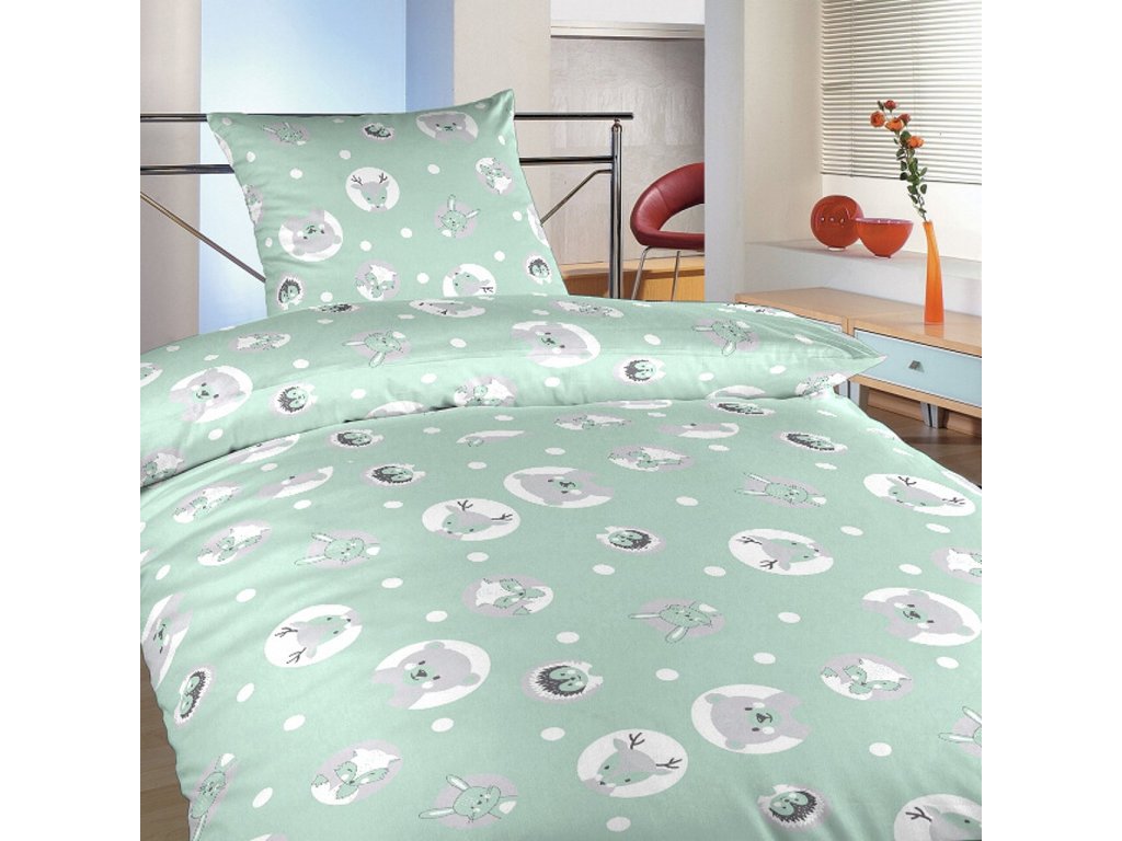 Design s motivem lesních zvířátek na mentolovém pozadí působí klidně a hravě. Díky rozměrům 90×130 cm (přikrývka) a 45×60 cm (polštář) je ideální do dětské postýlky. Povlečení si dlouho zachovává své barvy i tvar.
