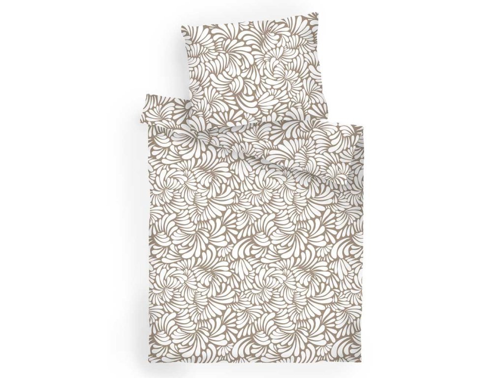 Moderní ložní prádlo Iluze opál vyniká světle hnědým (opálovým) základem s bílým abstraktním vzorem připomínajícím květinové či listové motivy. Skvěle se hodí do moderních interiérů. Vyrobeno v České republice firmou DADKA VRACOV. Doporučujeme kombinovat s prostěradlem v barvě opál nebo bílé.