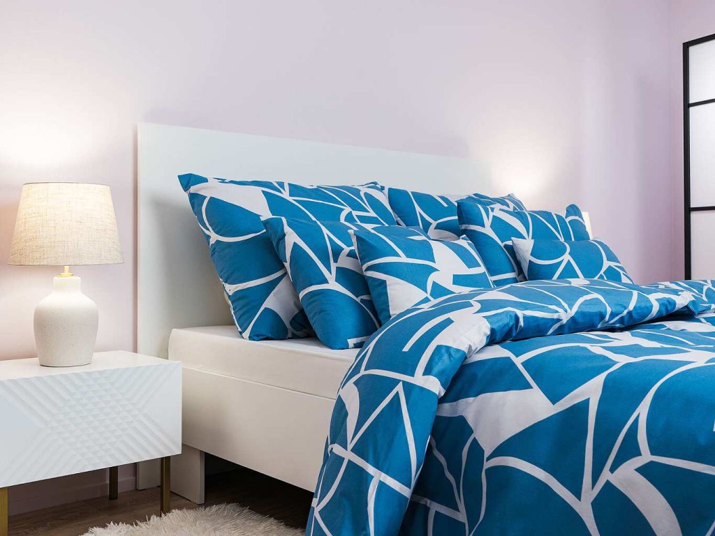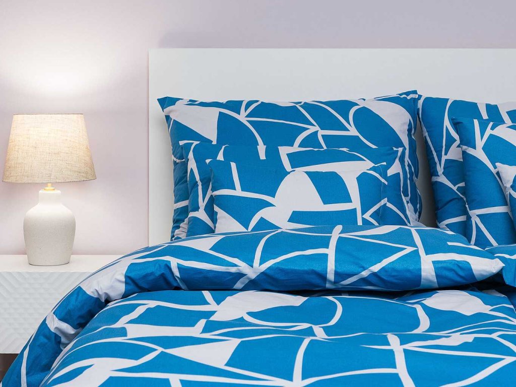 Moderní ložní prádlo Julius modrý s abstraktním vzorem v modré barvě na bílém podkladu přináší do ložnice svěžest a styl. Kombinace modrých tvarů a čistého pozadí působí elegantně a nadčasově. Povlečení doporučujeme kombinovat s prostěradly v barvě bílá, denim, šedá nebo stříbrná. Vyrobeno v České republice firmou DADKA VRACOV.