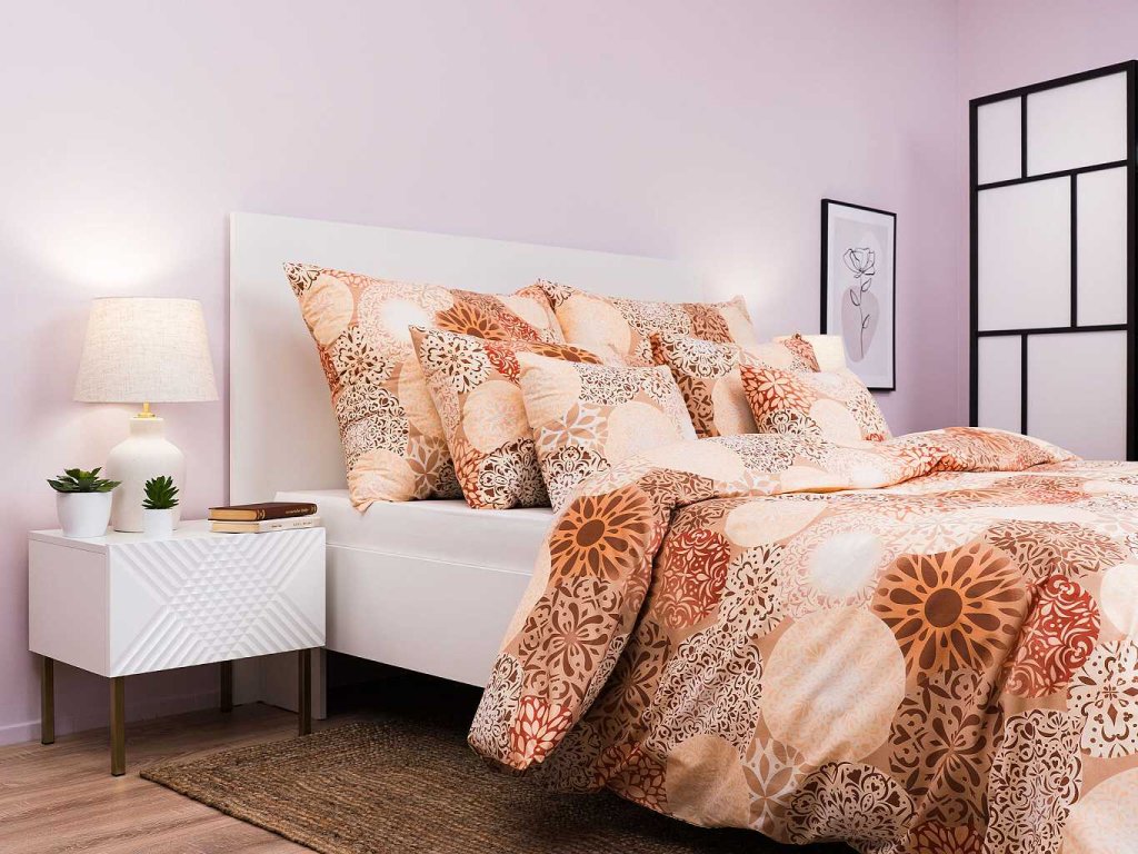 Stylové ložní prádlo Mandala béžová přináší do vaší ložnice pocit klidu a rovnováhy. Tento harmonický design doporučujeme kombinovat s prostěradly v medové, banánové, nugátové nebo světle hnědé barvě. Vyrobeno v České republice firmou DADKA VRACOV.