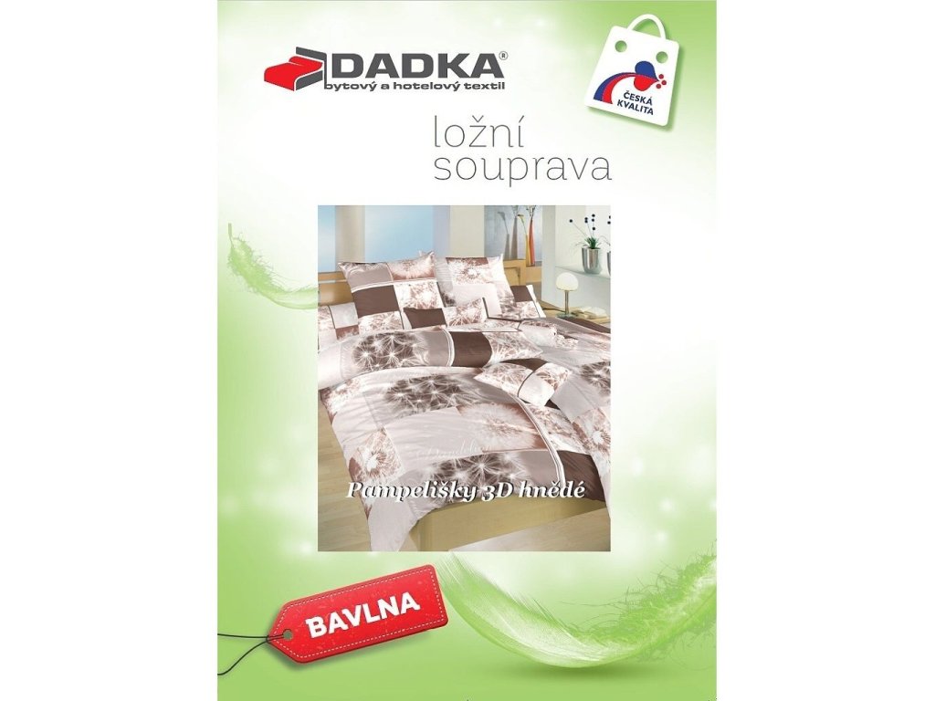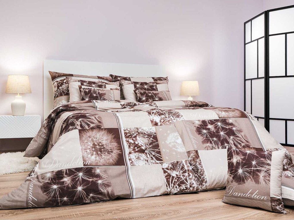 Moderní ložní prádlo Pampelišky 3D hnědé s realistickým motivem pampelišek v hnědých tónech přináší do ložnice přírodní klid a eleganci. Doporučujeme kombinovat s prostěradly v barvě béžová, tmavě hnědá nebo banánová. Vyrobeno v České republice firmou DADKA VRACOV.