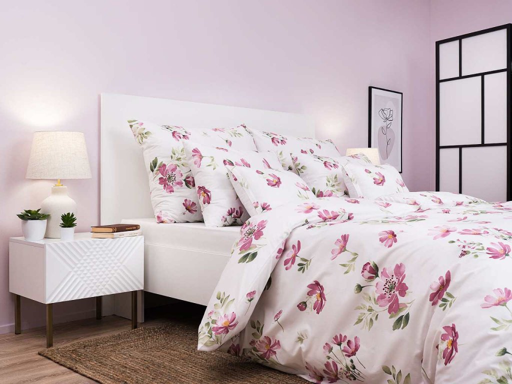 Elegantní ložní prádlo Sasanka pudrová s jemným květinovým motivem v pudrově růžové barvě přináší do ložnice klidnou a romantickou atmosféru. Nejlépe vynikne v kombinaci s prostěradlem v barvě bílá, světle šedá nebo hrášková. Vyrobeno v České republice firmou DADKA VRACOV.