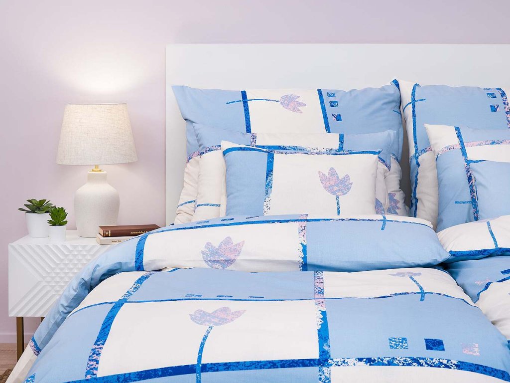 Stylové ložní prádlo Tulipán světle modrý přináší do vaší ložnice klid a svěžest. Jemný květinový motiv tulipánů v odstínech světle modré a bílé působí harmonicky a elegantně. Doporučujeme kombinovat s prostěradly v barvě královská modř, světle modrá, pudrová, denim nebo banán. Vyrobeno v České republice firmou DADKA VRACOV.