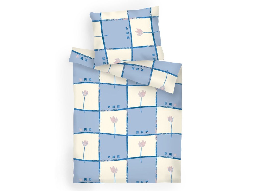 Povlečení Tulipán světle modrý z jemné česané bavlny. Květinový motiv, zipové zapínání, česká kvalita. Rozměr povlečení je 140x200, 70x90 cm.