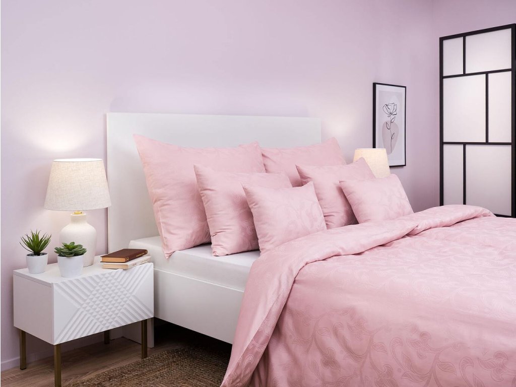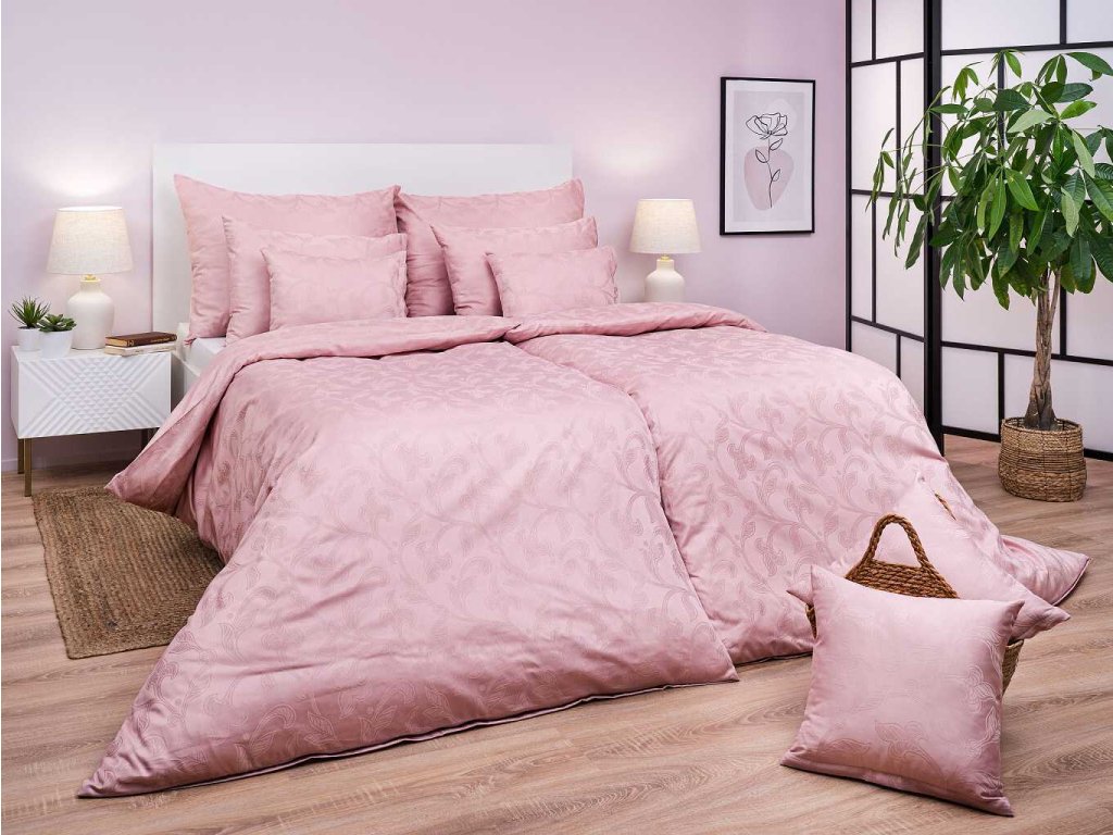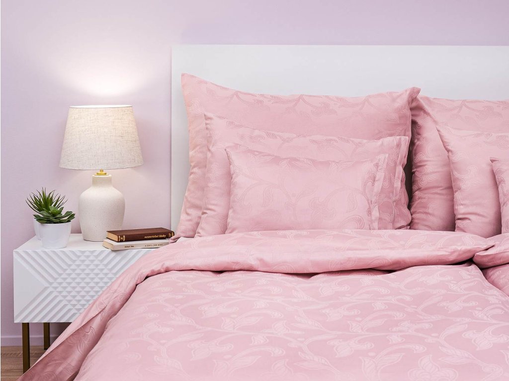 Dopřejte si klidný, hebký a luxusní spánek v damaškovém povlečení Rokoko pudrové. Jemný rostlinný motiv vytkaný v elegantním pudrovém odstínu působí něžně, harmonicky a mimořádně stylově. Tlumená pudrová barva dodá ložnici moderní, ale zároveň uklidňující atmosféru. Český výrobek DADKA VRACOV je zárukou precizního provedení, dlouhé životnosti a špičkové kvality materiálů.