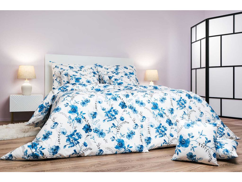 Flanelové povlečení Kvítí modré na bílém. Povlečení doporučujeme kombinovat s bílým, banánovým, denim, královsky modrým nebo opálovým prostěradlem. Rozměr povlečení je 240x200, 2x70x90 cm.