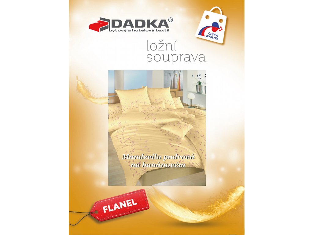 Hřejivé flanelové povlečení Mandevila pudrová na banánovém. Povlečení doporučujeme kombinovat s pudrovým, starorůžovým, medovým nebo banánovým prostěradlem. Rozměr povlečení je 220x200, 2x70x90 cm.