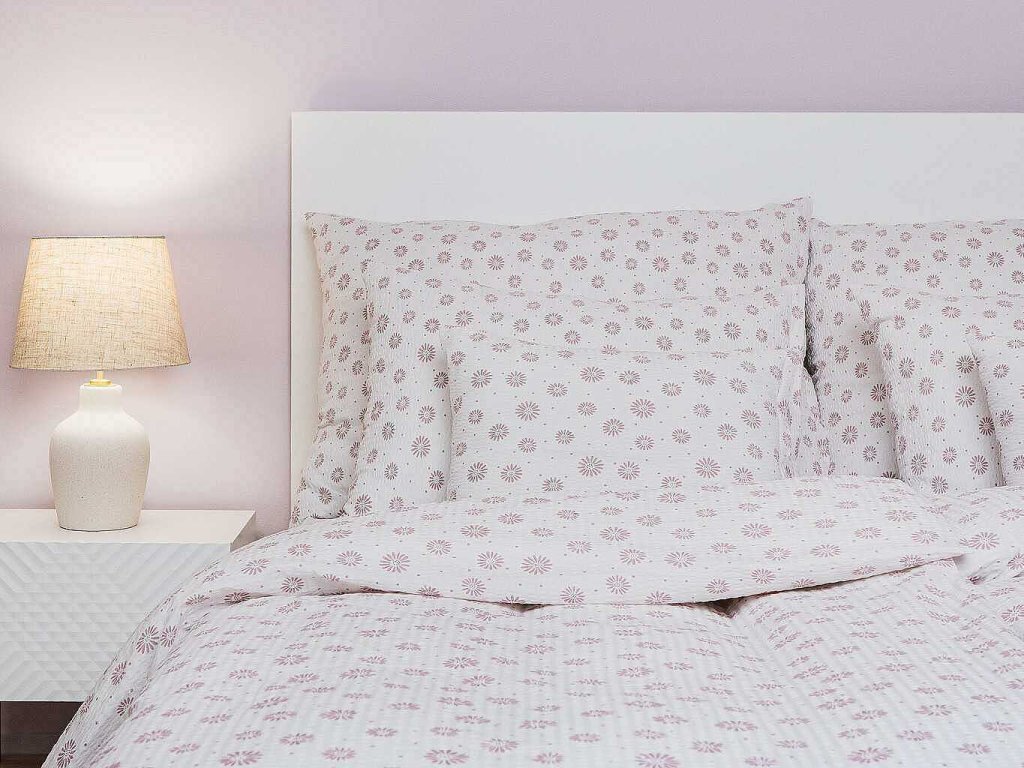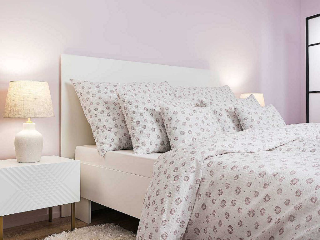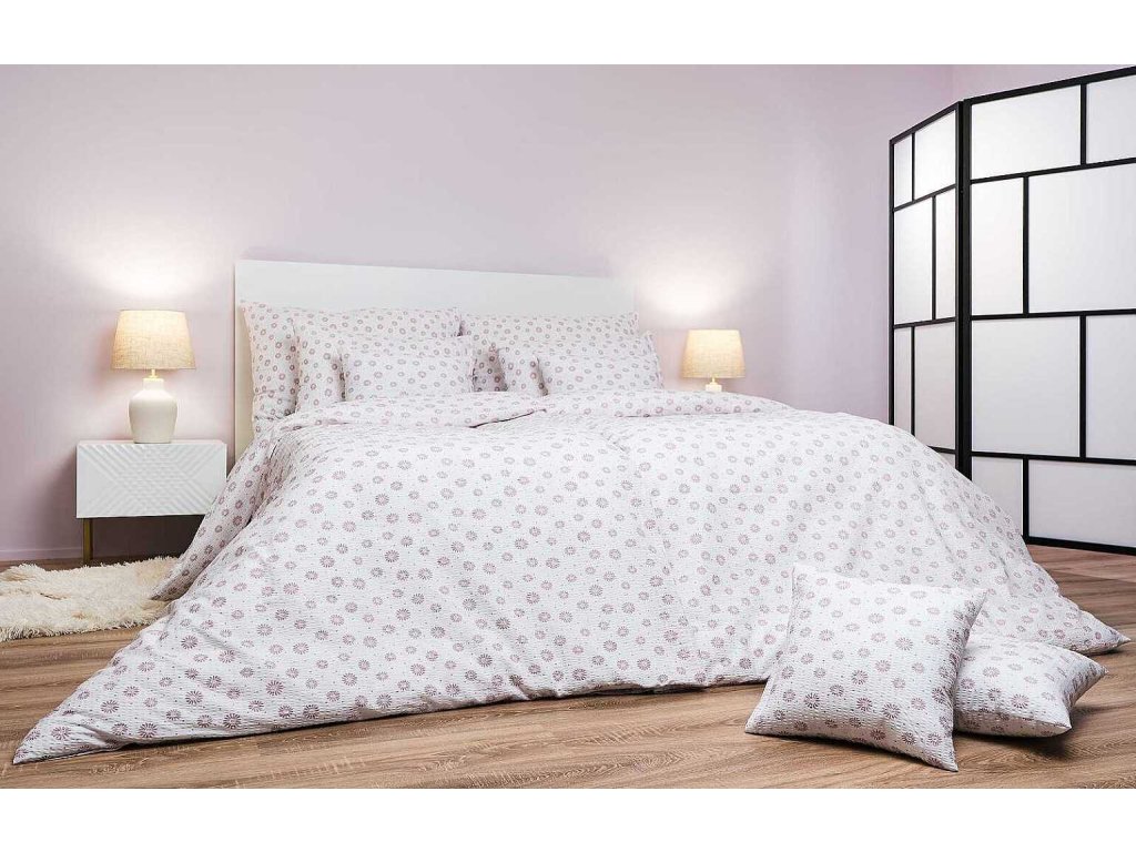 Povlečení krep Anežka pudrová na bílém 140x200, 70x90 cm