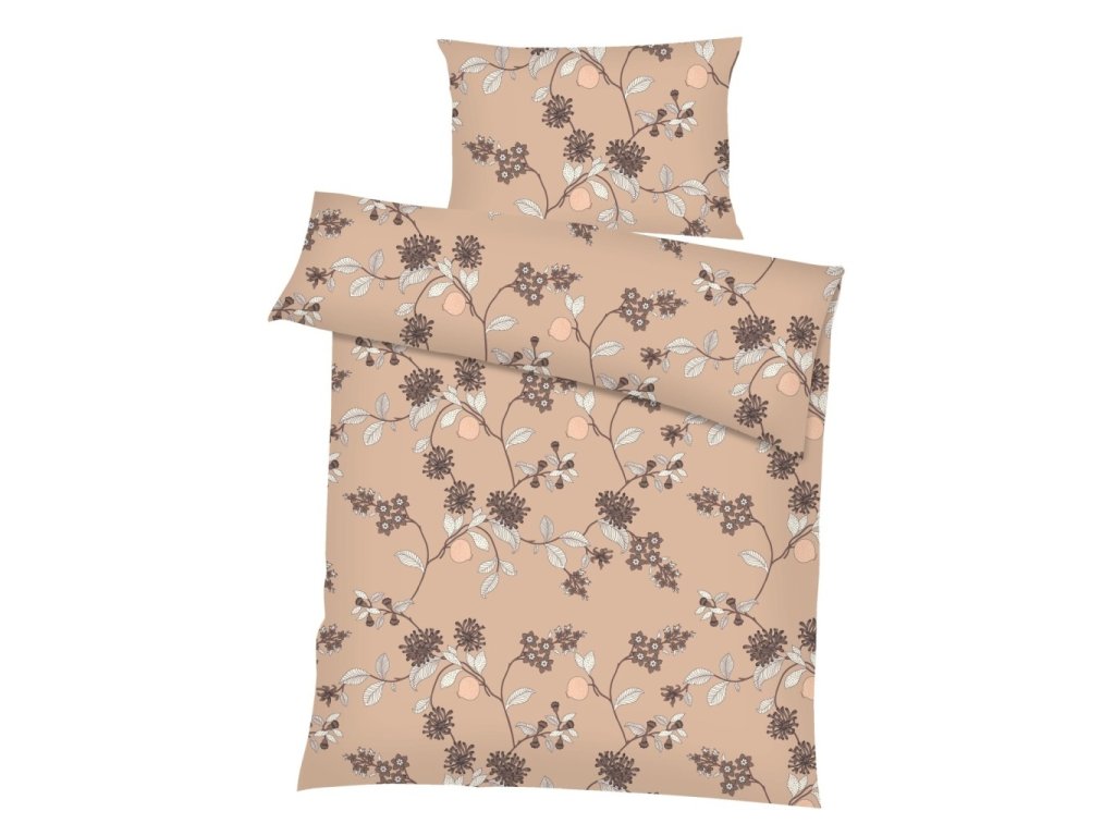 Povlečení krep Klaudie světle hnědá z kvalitní 100% bavlny s květinovým vzorem. Český výrobek, pohodlné zipové zapínání, snadná údržba bez žehlení. Rozměr povlečení je 140x200, 70x90 cm.