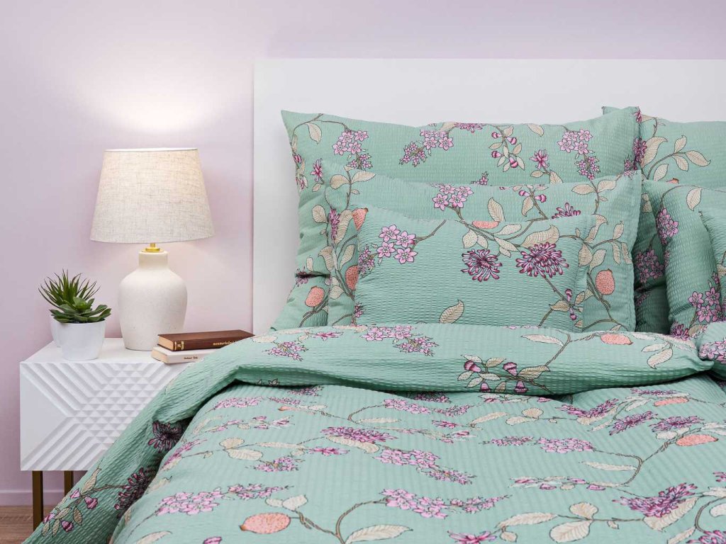 Elegantní ložní prádlo Klaudie zelená s jemným květinovým motivem v zeleném odstínu přináší do ložnice svěžest a klidnou atmosféru. Nejlépe vynikne v kombinaci s prostěradlem v barvě banánová, mentolová, pudrová nebo medová. Vyrobeno v České republice firmou DADKA VRACOV.