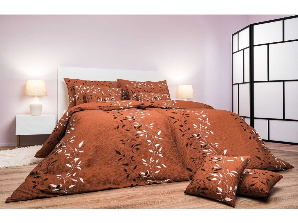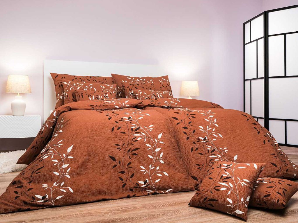 Krepové povlečení Mandevila hnědá ve II. jakosti s drobnou estetickou vadou, která neovlivňuje pohodlí ani funkčnost.